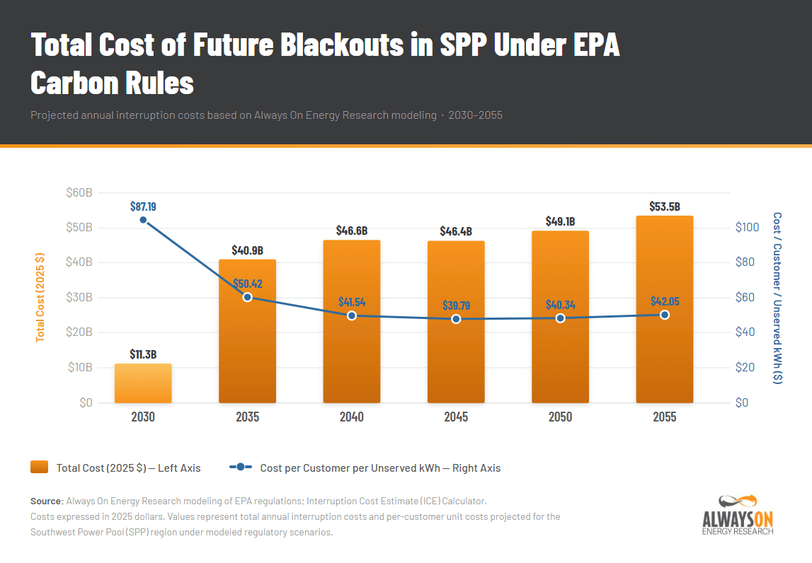 In one RTO alone, by severely underbuilding the grid and relying too much on wind and solar to meet peak demand, the EPA missed potentially $1.1 trillion in economic costs resulting from blackouts from 2030 to 2055 when extrapolating the data for years in between the test years. And once again, the ICE model wasn’t able to capture how bad the data for SPP truly was, so this value is even higher.